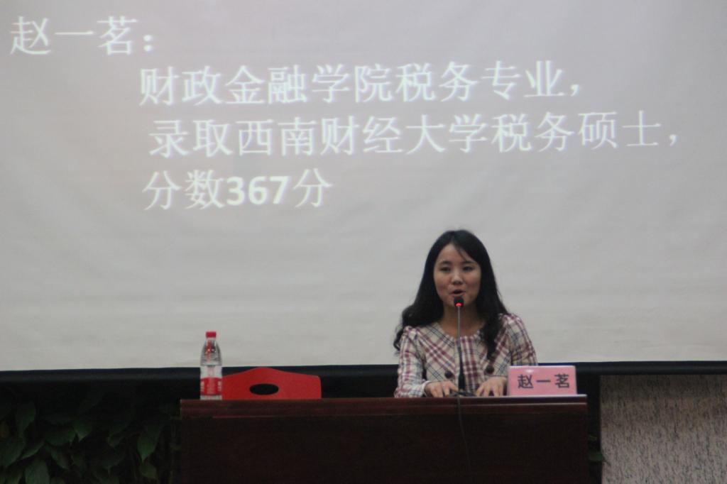 2016年4月6日晚上19:00,于60407多功能厅成功举办了“研途风景”考研交流会。本次活动由必赢官网分团委勤工助学部承办,到场嘉宾分别是西南财经大学金融学研究生钟莉,重庆大学金融专硕周禹彤,西南财经大学税务硕士赵一茗,西南财经大学金融学研究生周太鑫。