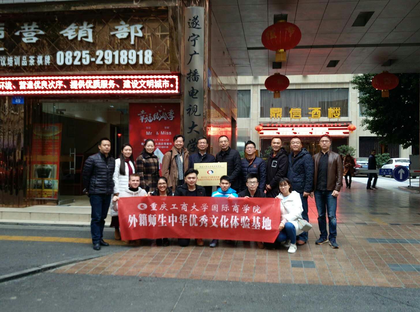 2017年12月7-8日,必赢bwin线路检测中心与遂宁广播电视大学共建的“教学实习与就业基地”授牌仪式暨外籍师生中华优秀文化体验活动在遂宁成功举行。必赢官网党总支书记兼院长赵驹、院长助理庞卫真、院办公室主任杨波、教学部部长苟焰及来自越南、马来西亚、哈萨克斯坦等国4名留学生以及2名国内学生干部参加了本次活动。